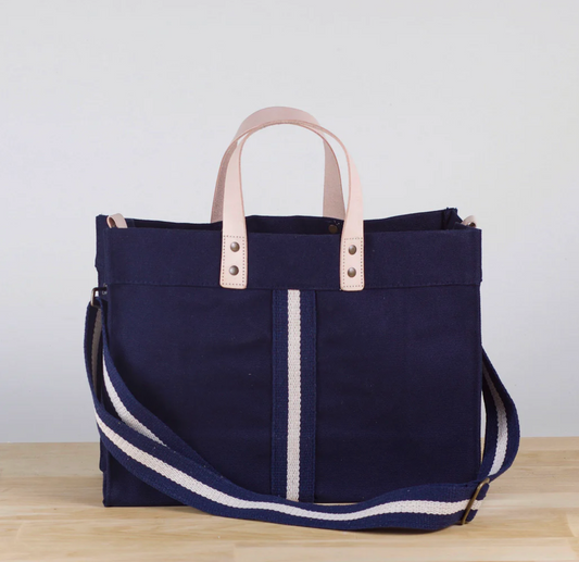 ShoreBags Mini Box Tote Bag- Navy/Natural
