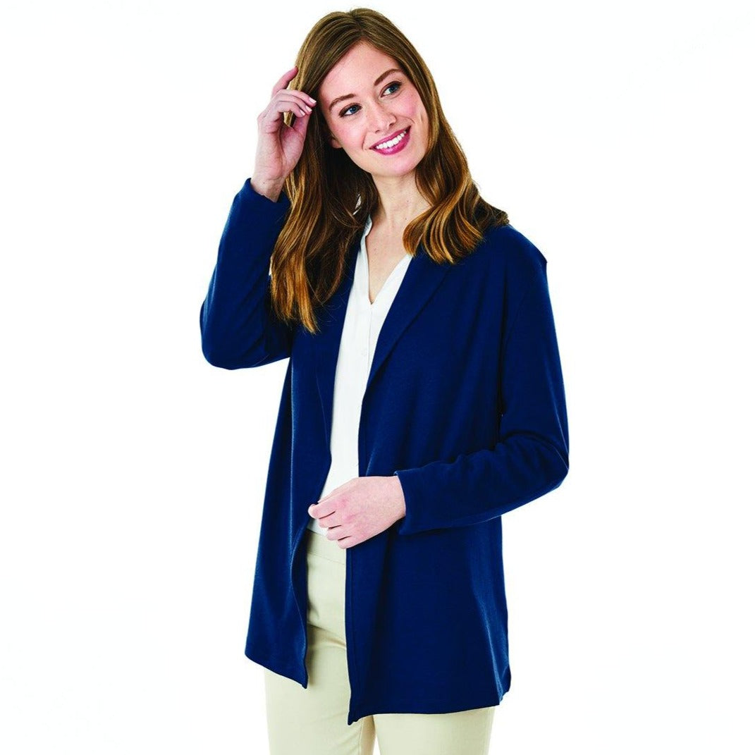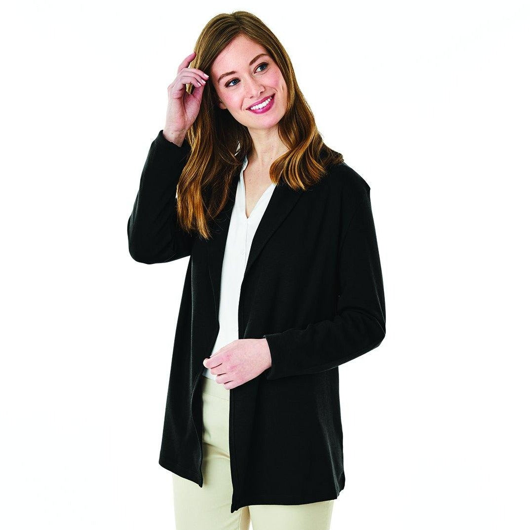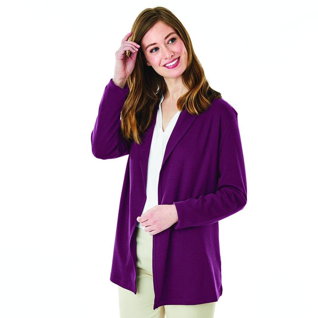 100% soft Supima Cotton 5.60 oz/yd². Supima yarn is exceptionally soft and luxurious and gives the garment a graceful drape. Shawl style collar and tagless neck label for comfort. Asymmetrical front hem for a flattering appearance. Length extends to mid-hip. Double-needle stitching for durability. (Dark Charcoal Heather is 100% cotton due to heathered coloring).
