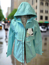 Features covered zippered side pockets, adjustable cuffs with hook & loop closure and A-line styling.