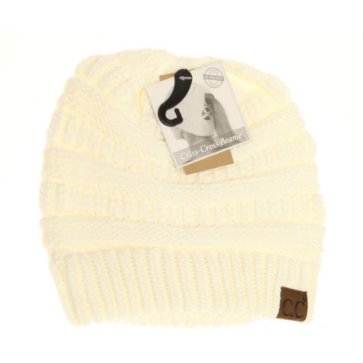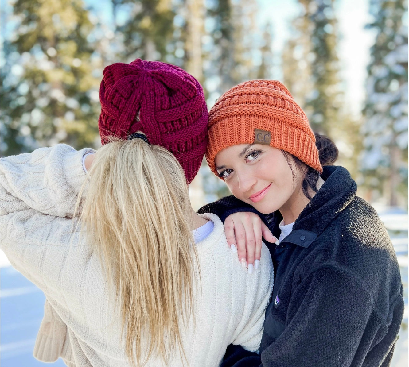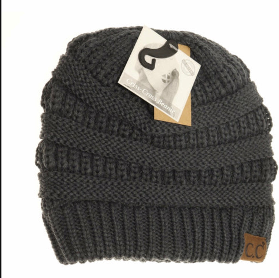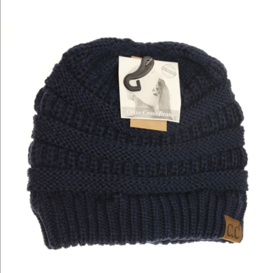 We are so excited about our criss-cross beanie that allows you to wear your hair at varying levels in the cooler weather while still keeping your head and ears nice and toasty!