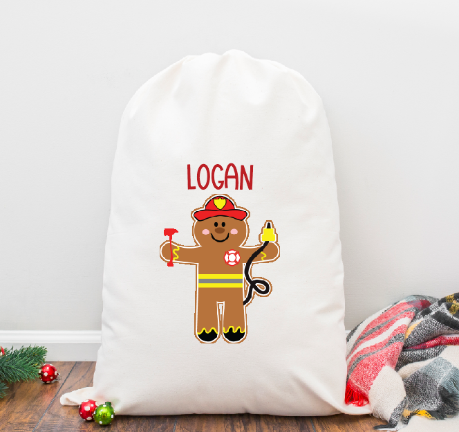 Gingerbread Fire Fighter Personalized Santa Sack