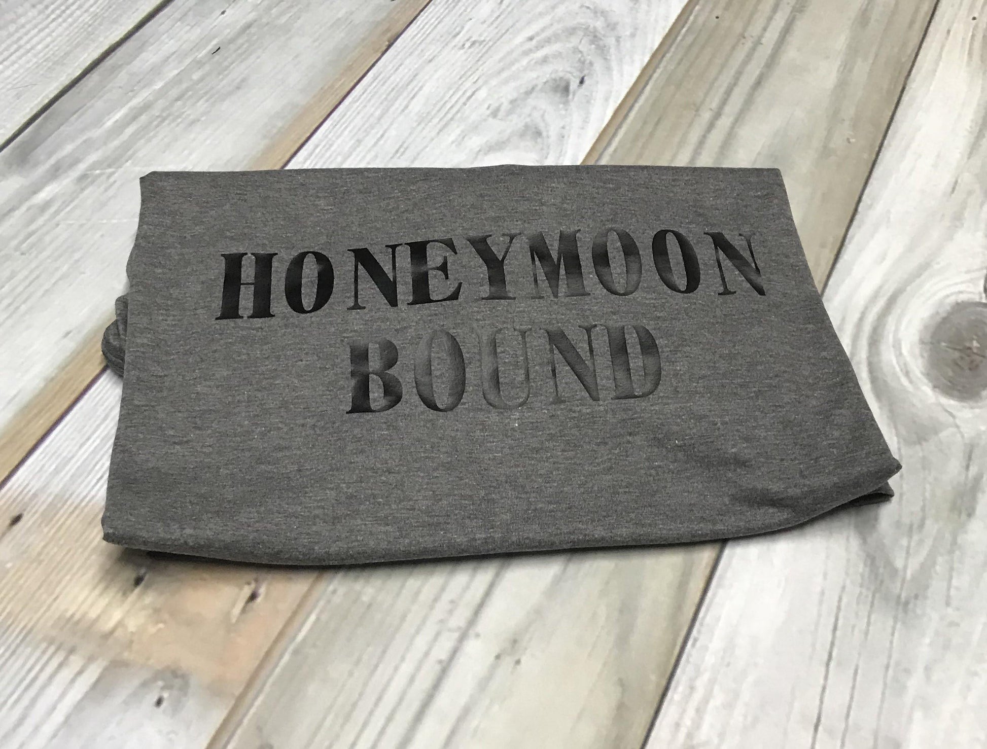Our Honeymoon Bound tank or tee is the perfect send-off outfit for newlyweds! Available in tank, short sleeve and long sleeve tees, Customize to fit your favorite colors, or destination theme!