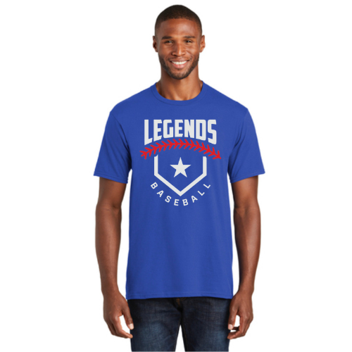 - 50/50 cotton/poly (Dark Heather Grey, Heather Navy)
