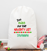 Too Nice Naughty List Personalized Santa Sack
